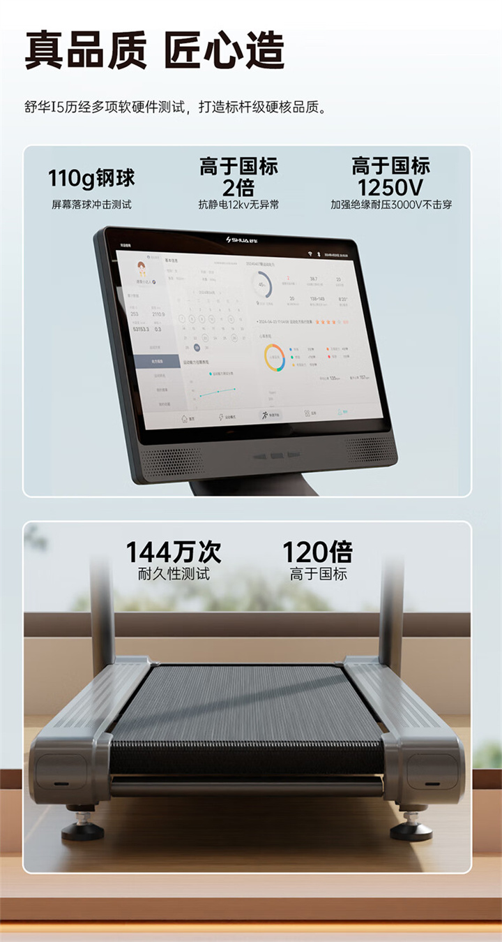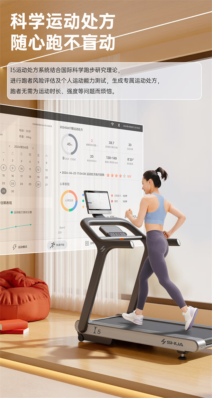 舒華I5智能家用跑步機(jī)是由舒華體育聯(lián)合中國(guó)體育科學(xué)學(xué)會(huì)、上海體育大學(xué)運(yùn)動(dòng)科學(xué)學(xué)院教授陸大江等權(quán)威機(jī)構(gòu)、專家共同研發(fā)設(shè)計(jì)。獨(dú)特之處在于它結(jié)合國(guó)際科學(xué)跑步研究理論,能夠針對(duì)不同用戶進(jìn)行運(yùn)動(dòng)能力測(cè)試,并根據(jù)測(cè)試結(jié)果生成因人而異的有氧運(yùn)動(dòng)處方。這意味著每個(gè)用戶都能得到一個(gè)適合自己的運(yùn)動(dòng)方案,從而更好地達(dá)到運(yùn)動(dòng)效果。這一創(chuàng)新技術(shù)可以確保用戶在運(yùn)動(dòng)過(guò)程中能夠保持在最佳的區(qū)間狀態(tài),從而提高運(yùn)動(dòng)安全性和有效性。