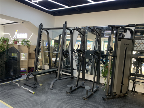 無(wú)氧力量區主要是力量器械,比如史密斯架、小飛鳥(niǎo)綜合訓練器、坐式胸肌推舉訓練和杠鈴等等。