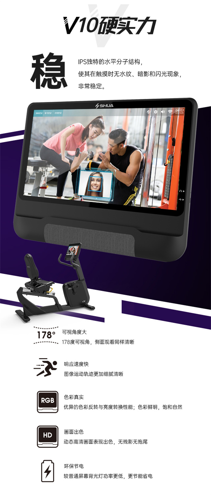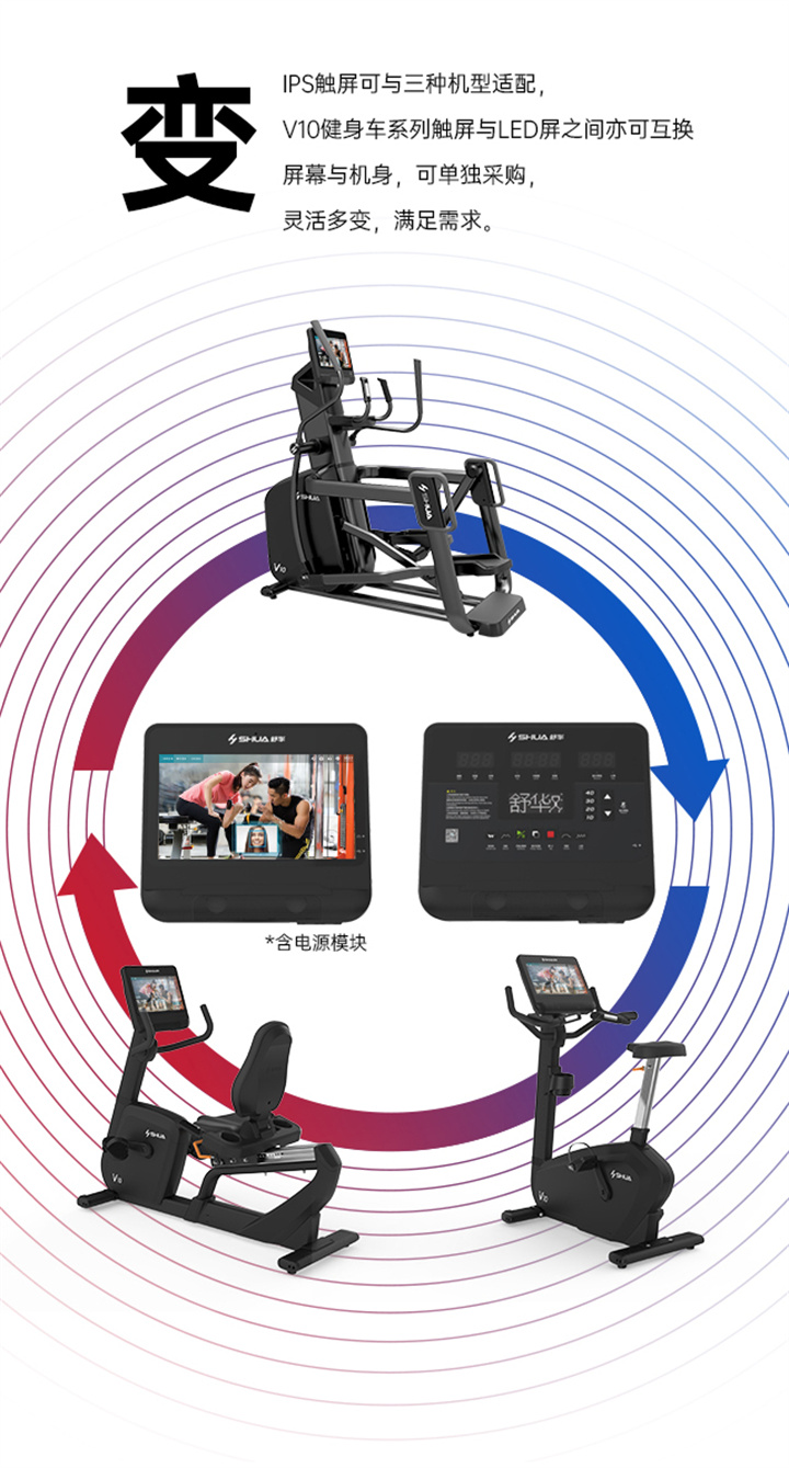 舒華立式商用健身車(chē)SH-B9100U(V10)觸屏版擁有超大顯示和操作屏幕, 可以任意設置阻力、時(shí)間和距離等參數,還可以即時(shí)顯示心跳和轉速等數據,同時(shí),SH-B9100U提供多項科學(xué)運動(dòng)處方,更輕松掌握運動(dòng)節奏。